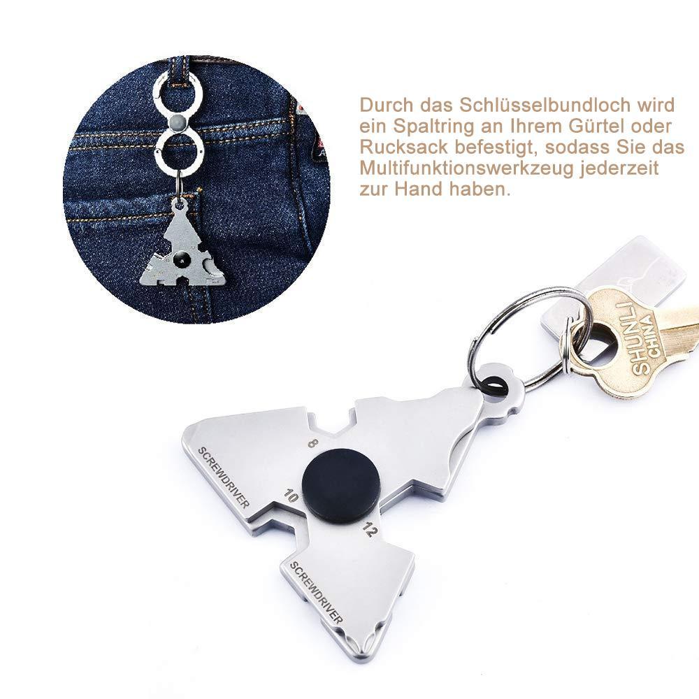 Überlebensausrüstung: Unverzichtbares Produkt für jeden Tag. Einzigartiges zwei-dreieckiges Design, frei zu drehen in ein sechseckiges Werkzeug für verschiedene Funktionen. Mit einem Loch für das Schlüsselband und Schlüsselring, das sich leicht mit einem Schlüsselring befestigen lässt, sodass Sie das Multifunktionswerkzeug jederzeit griffbereit halten und bereit für jeden Notfall. Ein beliebtes EDC Handwerkzeug für drinnen und draußen.