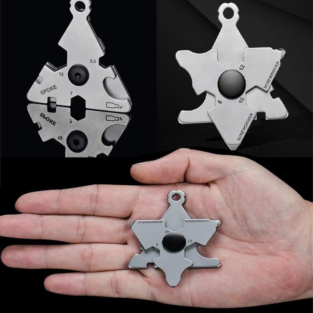 12-in-1-Werkzeug: Kleine Größe, aber leistungsstarke Funktionen, 5,1 x 5,1 x 0,2 cm Größe und 1,65 oz leicht, einschließlich Schlüsselanhängerloch, Flaschenöffner, Philips-Schraubendreher, flacher Schraubendreher, 3,5 mm / 4,5 mm Fahrrad-Speichen, 5,5 mm / 7 mm / 8 mm / 10 mm / 12 mm Sechskantschlüssel. Ein Satz von Werkzeugen, die alles tun können, vom Festziehen von Schrauben bis zum Öffnen eines Getränkes.