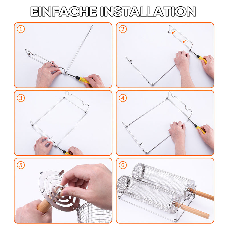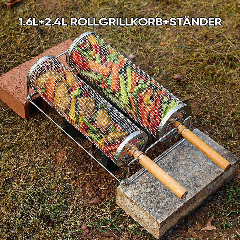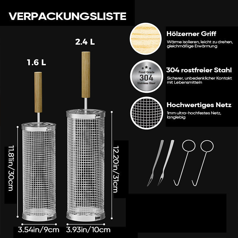 Rollender Grillkorb - Erleben Sie das verbesserte rollende Grillkorbset von 2024! Enthält 2 große Grillkörbe, 2 kleine Gabeln, 4 Ständer und 2 Haken, ein komplettes Paket, das Ihren Grillbedarf rationalisiert und das Grillen einfacher denn je macht.