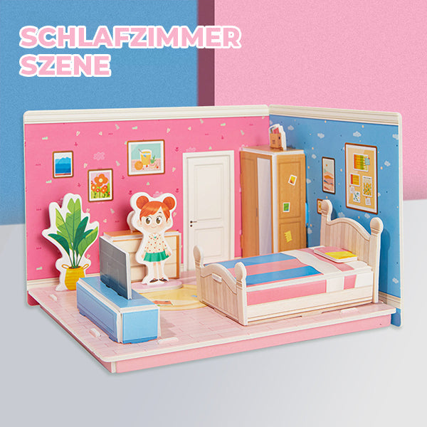 Komplette Heimumgebung: Das Puzzleset enthält eine Vielzahl von Möbeln, die von einer großen Auswahl an Szenen begleitet werden. Diese umfassende Auswahl fördert die kognitive Entwicklung und erweitert das Verständnis der Kinder für ihre Umgebung. Darüber hinaus wird durch die Einbeziehung von Charaktermodellen die Atmosphäre in jeder Szene noch weiter verstärkt.