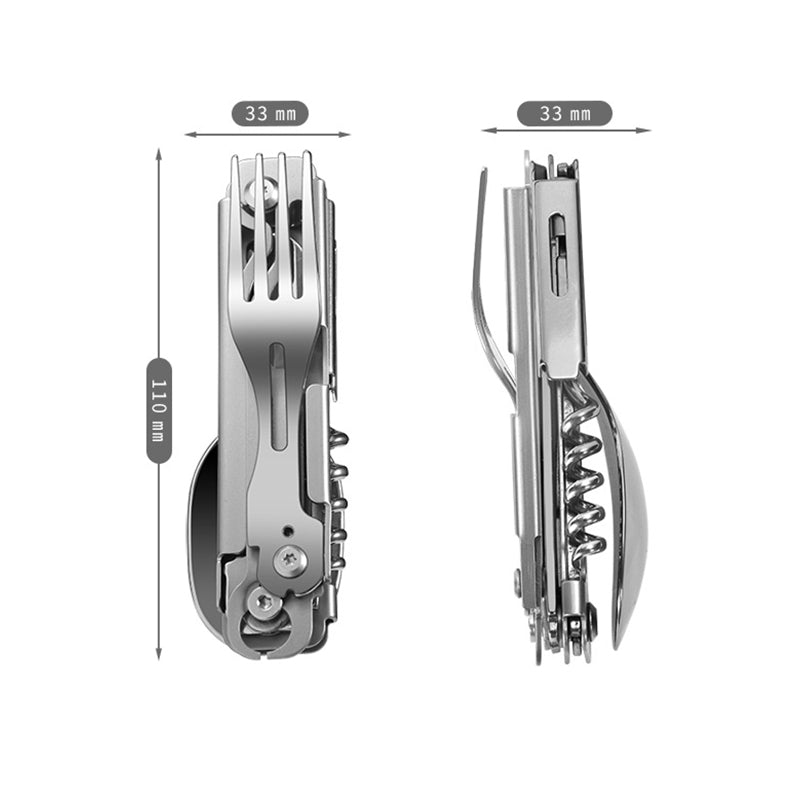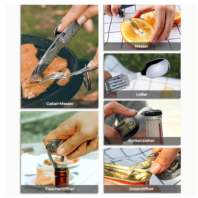 😊5-in-1 faltbares Multifunktions-Besteckset: Enthält Messer, Gabel, Löffel, Weinkorkenzieher und Dosenöffner-Korkenzieher. Das tragbare, multifunktionale Outdoor-Camping-Besteckset ist platzsparend und eignet sich hervorragend für Camping, Reisen, Büro, Uni, Schule, Auto, Rucksacktour, Picknick, Wandern und mehr.