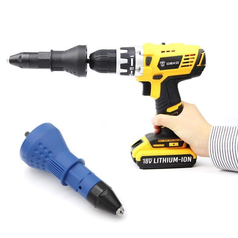 Multifunktional: Diese Nietpistole kann mit verschiedenen Arten von Elektrowerkzeugen kombiniert werden.