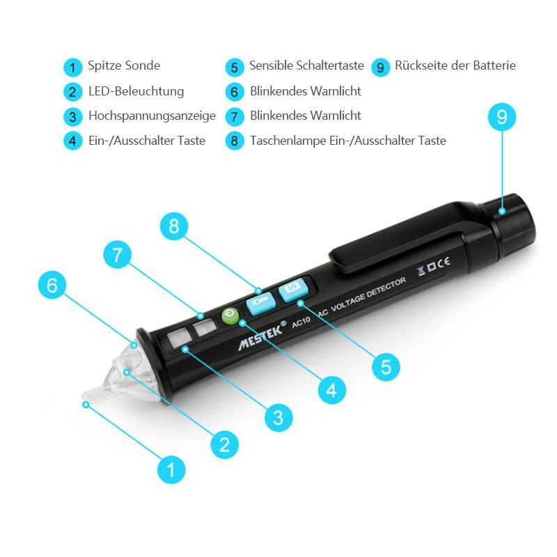 AC10 Intelligenter Spannungsprüfer, 12V/48V ~ 1000V intelligenter akustooptischer Alarm. Sicherheitsüberprüfung, Isolationsbetrieb. Führen Sie für die Fehlersuche in Bezug auf den industriellen Stromverbrauch und die Installation von Hausinstallationsleitungen eine Inspektion der Wartungsarbeiten durch.