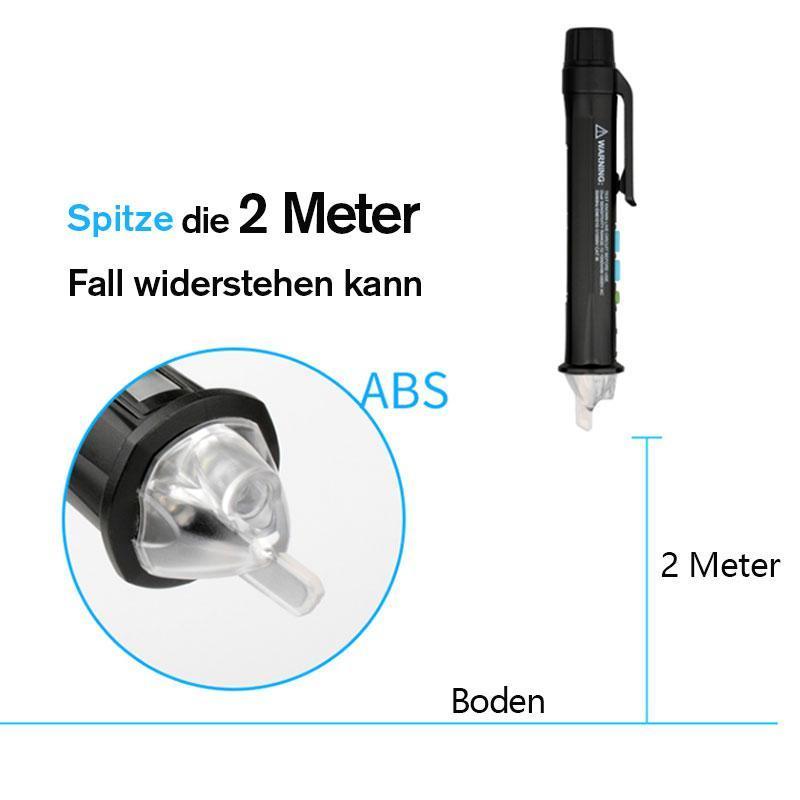 NCV-empfindlicher Test - Wenn Wechselspannung erkannt wird, leuchten die sichtbaren LED-Anzeigen entsprechend der Signaldichte (niedrig, mittel, hoch). Der Piepser ertönt bei unterschiedlichen Frequenzen. Bei starkem Signal leuchtet rotes Licht.