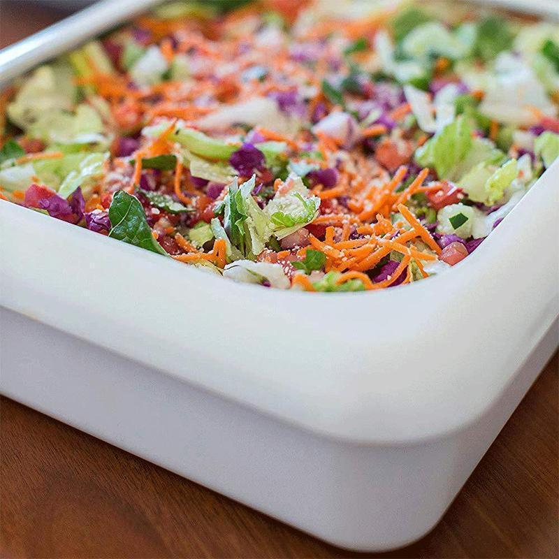 Die Alufolie Aufbewahrungsbox ist der perfekte Begleiter zur Einweg-Folienpfanne. Öffnen Sie einfach den Rahmen und stellen Sie die mit Ihrem Lieblingsgericht gefüllte Pfanne (kühlen Sie heiße Lebensmittel auf 30 Grad ab, bevor Sie sie in Ihre Tin Foil Crisper geben). Wenn es Zeit zum Servieren ist, nehmen Sie einfach den durchsichtigen Deckel ab und legen Sie ihn unter Ihren Zinnfolien-Crisper. Sie müssen nicht mehr nach Ihrem Deckel suchen.