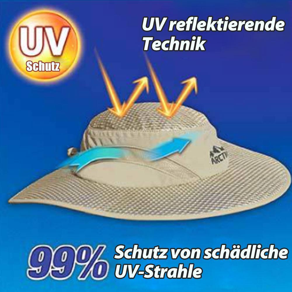 Mit Arktis Hut bleiben Sie kühl und schützen sich vor der Sonne. Dieser Unisex-Hut reflektiert 99% der UV-Strahlen und verfügt über einen Verdunstungskühler.