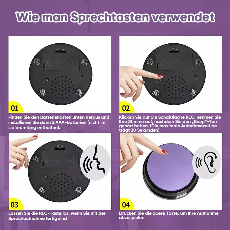 Oder eine Möglichkeit, wichtige Nachrichten einfach aufzuzeichnen und zu speichern? Diese tragbare beschreibbare Soundtaste ist perfekt für Sie!