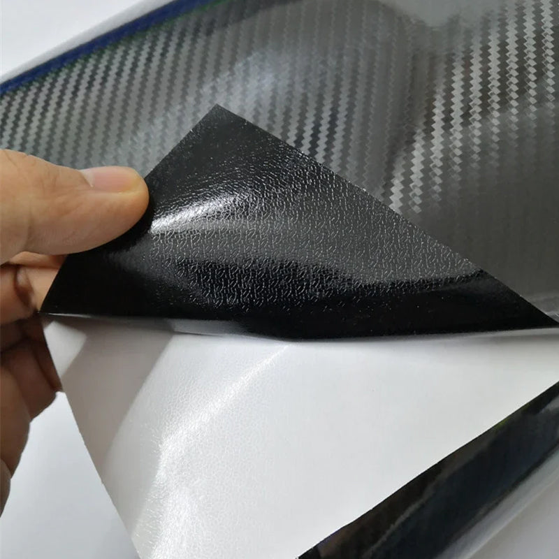 Aufkleber aus Kohlefaserfolie, hochglänzend und glatt.
