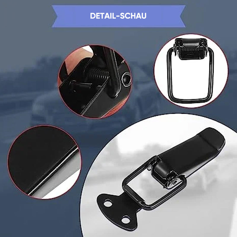 🚗Sicher und zuverlässig - Universelle Eisenschnellverschlüsse Professionell hergestellt und vollständig konform, trägt das universelle Design dazu bei, die Haube sicher und zuverlässig zu befestigen.