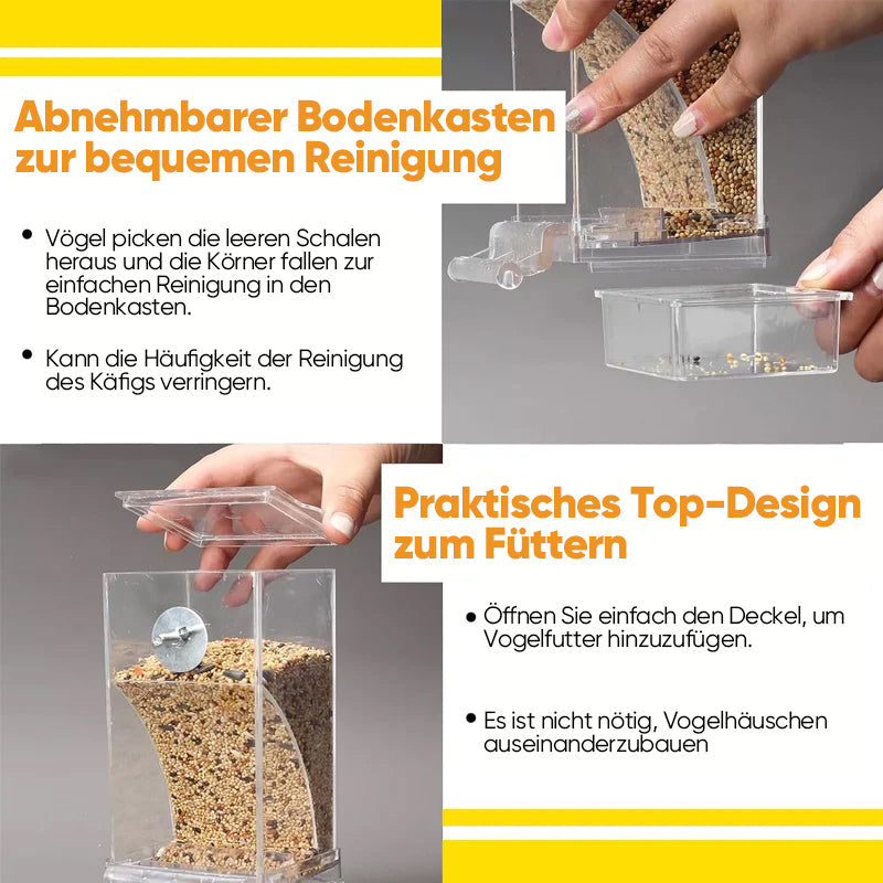 No-Chaos-Design: Der Futterspender verfügt über ein No-Chaos-Design, um Verschüttungen und Verschmutzungen zu vermeiden und die Reinigung zu erleichtern.