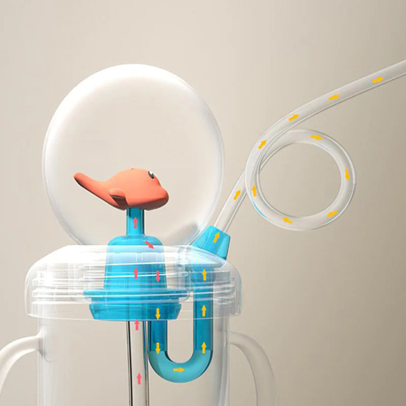 Niedliches Auslaufdesign - dieser Babytrinkbecher mit turbogeladenem Unterdruck verfügt über ein Ventil, das Luftdruck nutzt, um Wasser anzusaugen und auszuspritzen, sodass Babys sich auf unterhaltsame und unterhaltsame Weise in das Trinken von Wasser verlieben können.