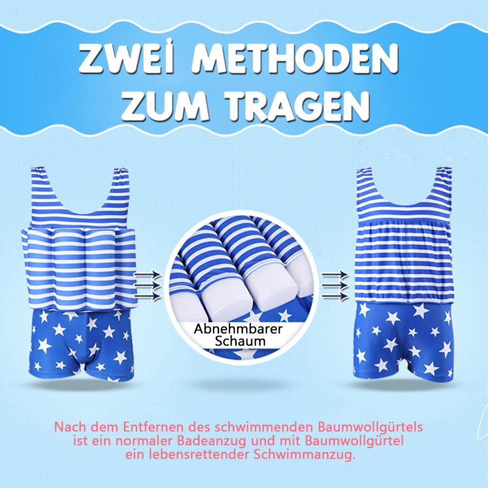 Der Gürtel des Badeanzugs besteht aus schwimmender Baumwolle. Dank des großartigen Designs kann sich Ihr Kind frei bewegen, über Wasser bleiben und furchtlos schwimmen. Sobald Ihr Kind das Wasser verlässt, kann der Gurt aus dem Badeanzug genommen und bei Bedarf angelegt werden.