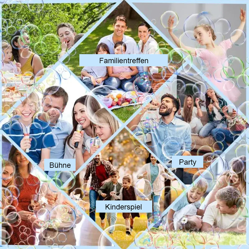 Der Seifenblasenstab verfügt über 32 Seifenblasenlöcher und bläst mehr als 2000 bunte Seifenblasen pro Minute.