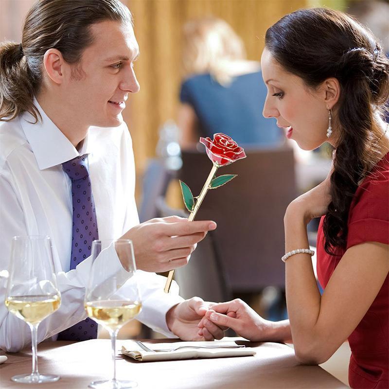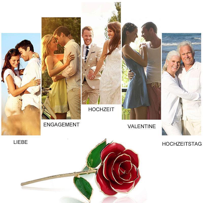 Für immer blühende Rose: Rote Rosen sind das ultimative Symbol für romantische Liebe und dauerhafte Leidenschaft. Rot steht für Begeisterung, Gold im Namen des Adels, gibt Ewigkeit und Definition der Liebe, die wie vergoldete Rose niemals verdorben wird.