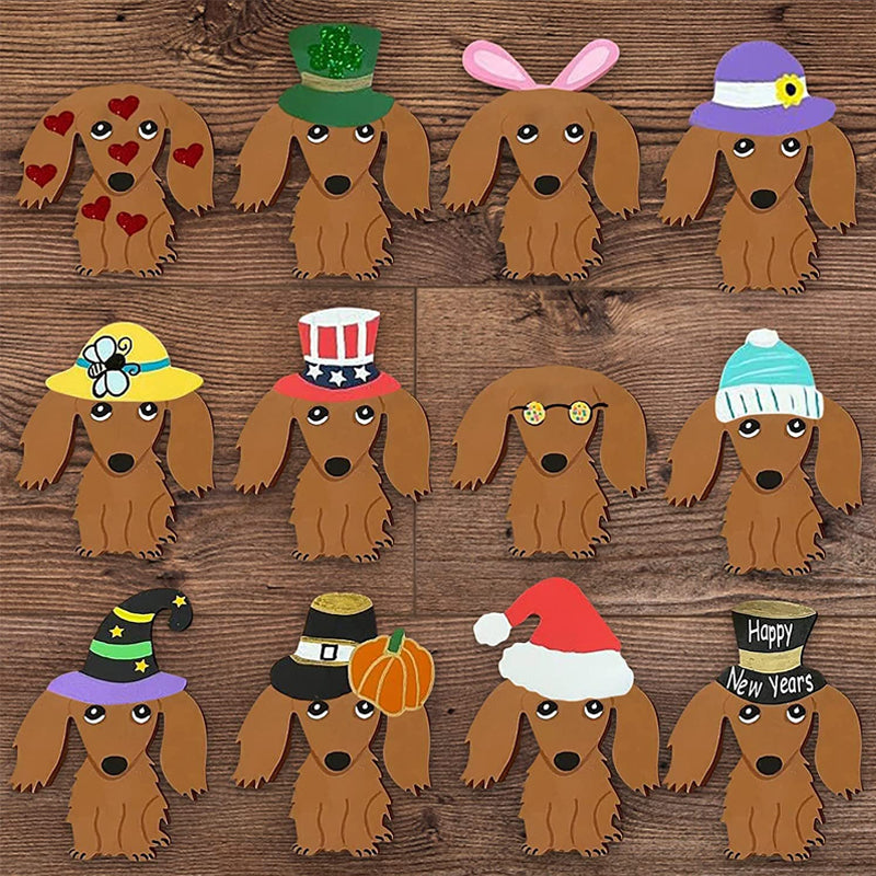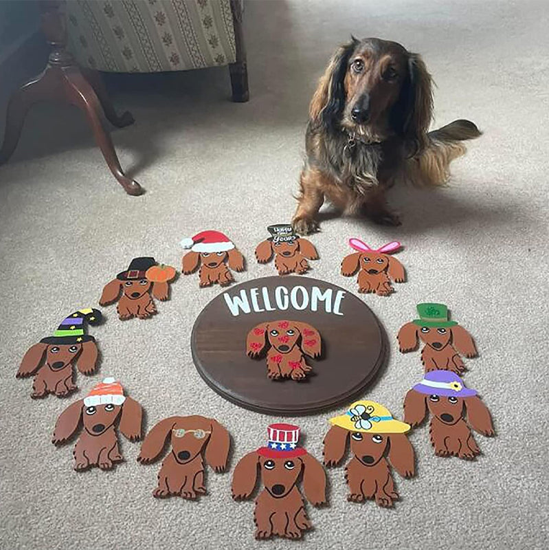【Universelle Größe, einfach zu installieren】Die hängende Dekoration der Dackeltür, ca. 30 cm Durchmesser, jede Türverkleidung enthält ein starkes Schlüsselband für eine einfache Installation und Magnete auf der Rückseite der Türverkleidung und des Hundes für einfaches Anziehen und Austauschen.