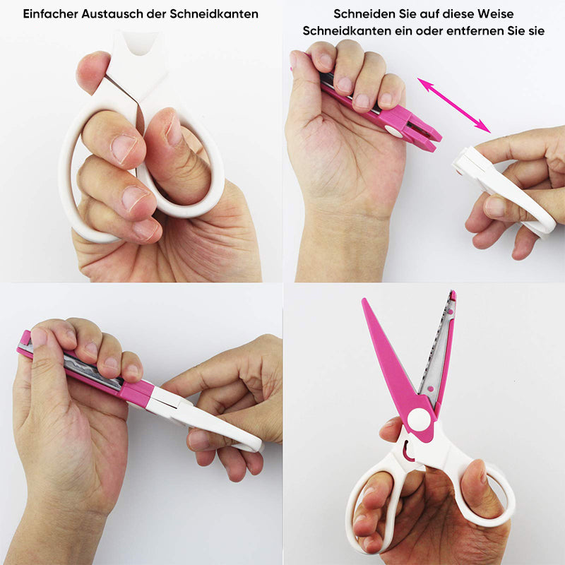 KUNST- UND HANDWERKSCHERE - Sowohl für die rechte als auch für die linke Hand geeignet. Die Schere schneidet Wellenmusterkanten oder unregelmäßige Stanzkanten, bastelt Ihre eigenen Alben, Grußkarten, dickes Fotopapier, wasserfestes Papier, Gebetskarten, Scrapbooking und andere Kunst- und Bastelarbeiten Papier.