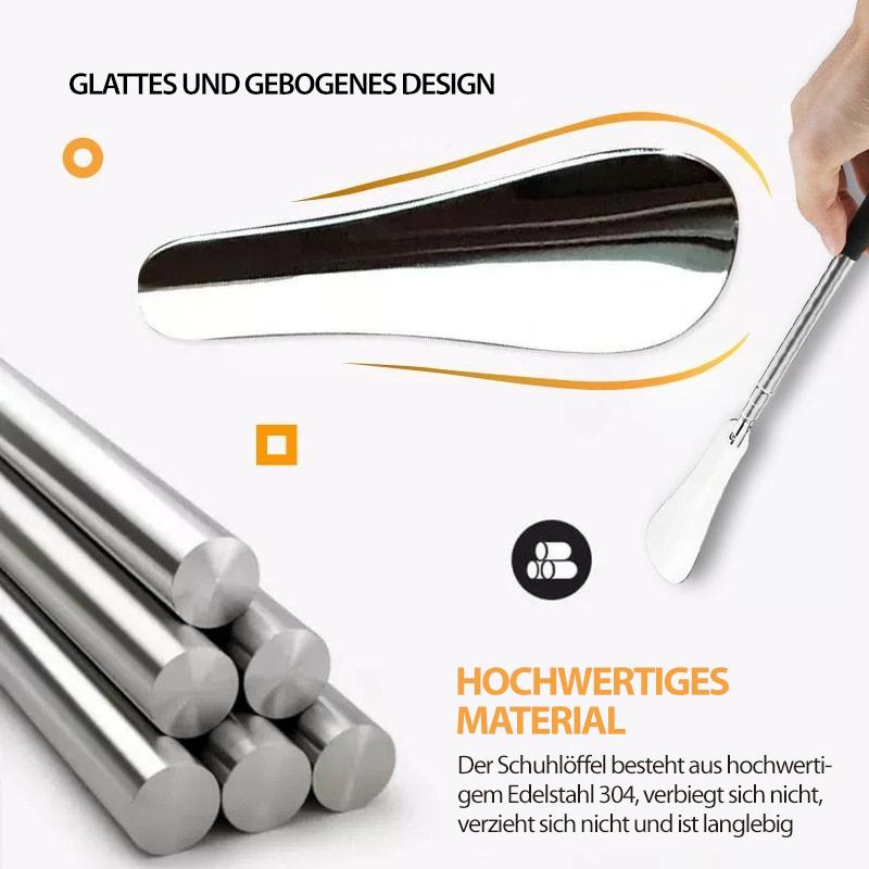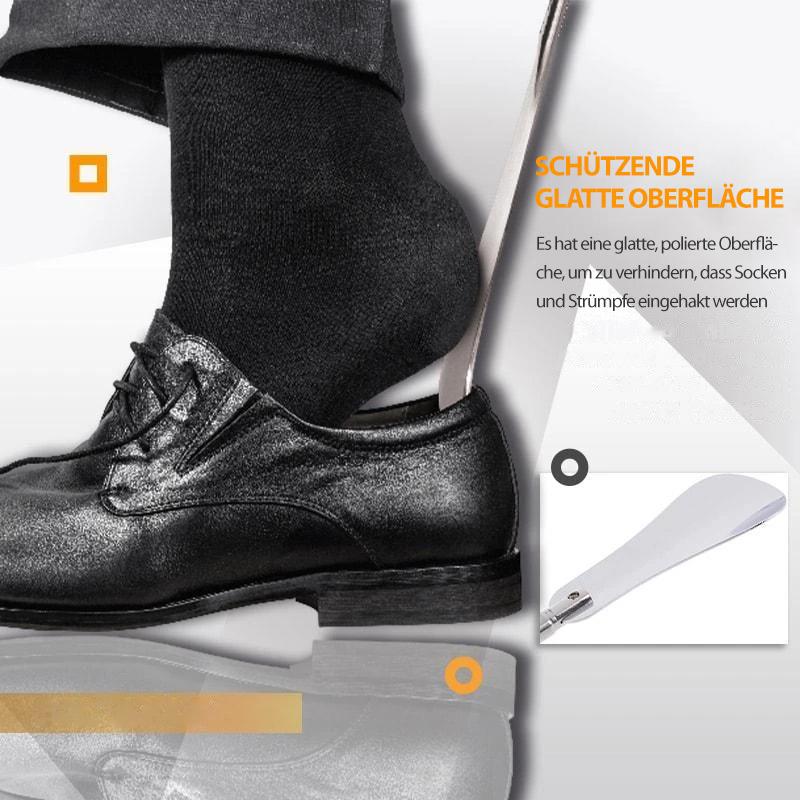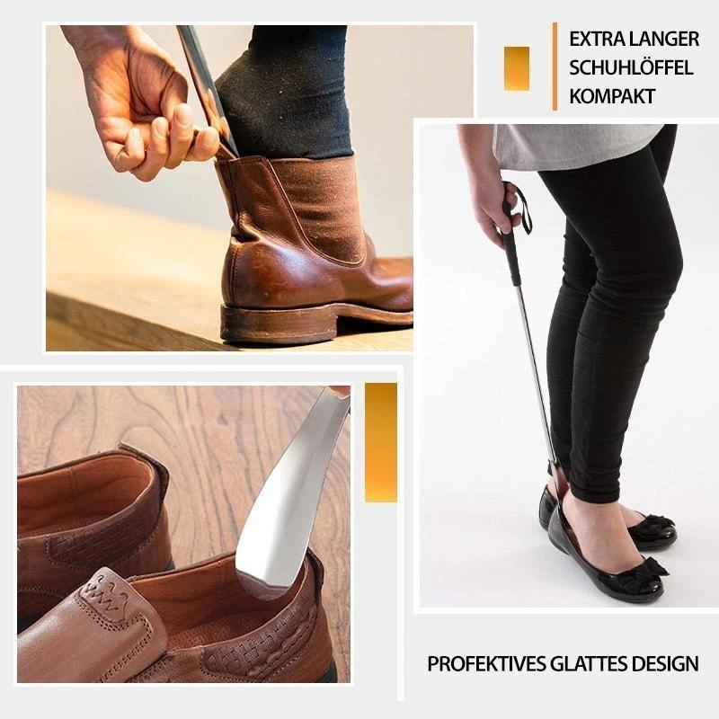 Extra langes Schuhlöffel: Verwenden Sie für leichtes Stehen ein Schuhlöffel aus Edelstahl mit einem glatten und geschwungenen Design, das problemlos in jeden Schuhstil hinein- und herausgleiten kann, einschließlich Sportschuhen, Freizeitschuhen und Abendschuhen sowie Skischuhen oder Arbeitsschuhen .