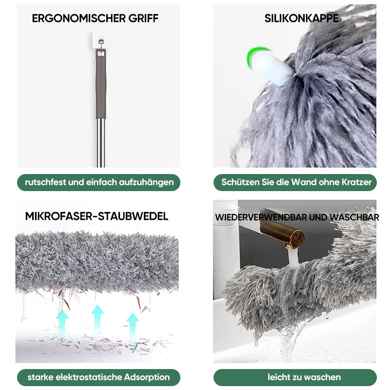 Mikrofaser- und Edelstahlstab: Dieser Staubwedel besteht aus hochwertigem Mikrofasermaterial mit einem neu gestalteten Edelstahlstab, der nicht rostet und eine lange Lebensdauer hat.