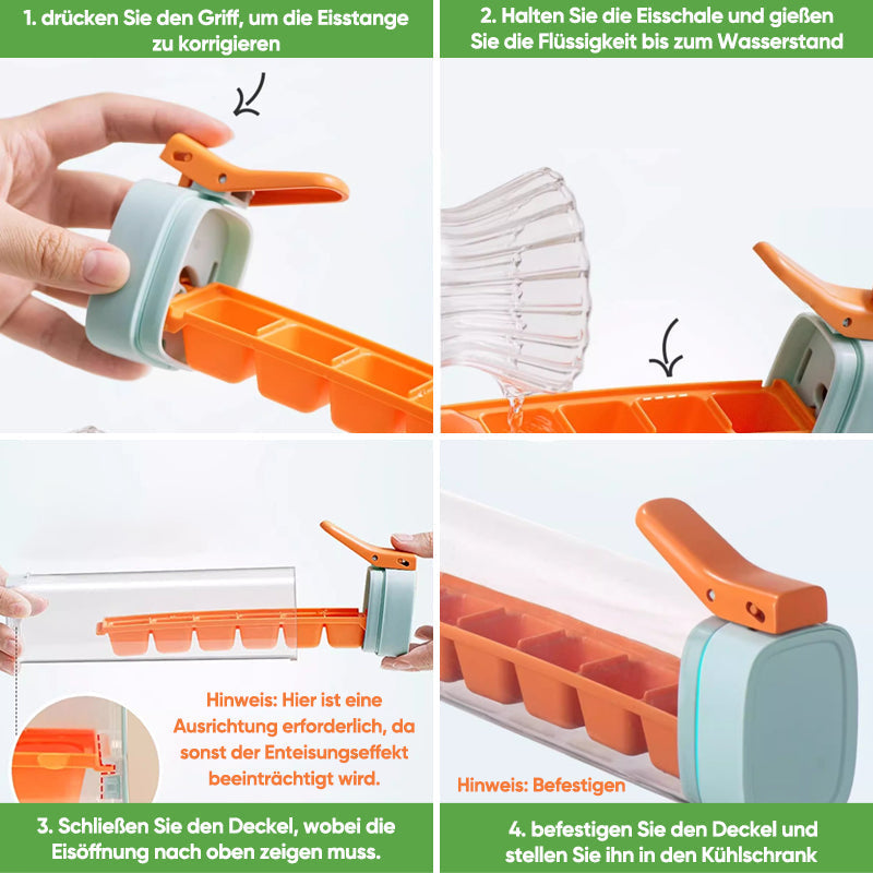 🧊【Sicheres & hochwertiges Material】Eiswürfelbehälter ist aus lebensmittelechtem PP-Material, BPA-frei, stabiler, sicherer und langlebiger, geruchlos und leicht zu reinigen; Unsere Eiswürfelbehälter mit schlanker Größe können leicht in den Kühlschrank passen, um Ihnen zu helfen, Platz zu sparen