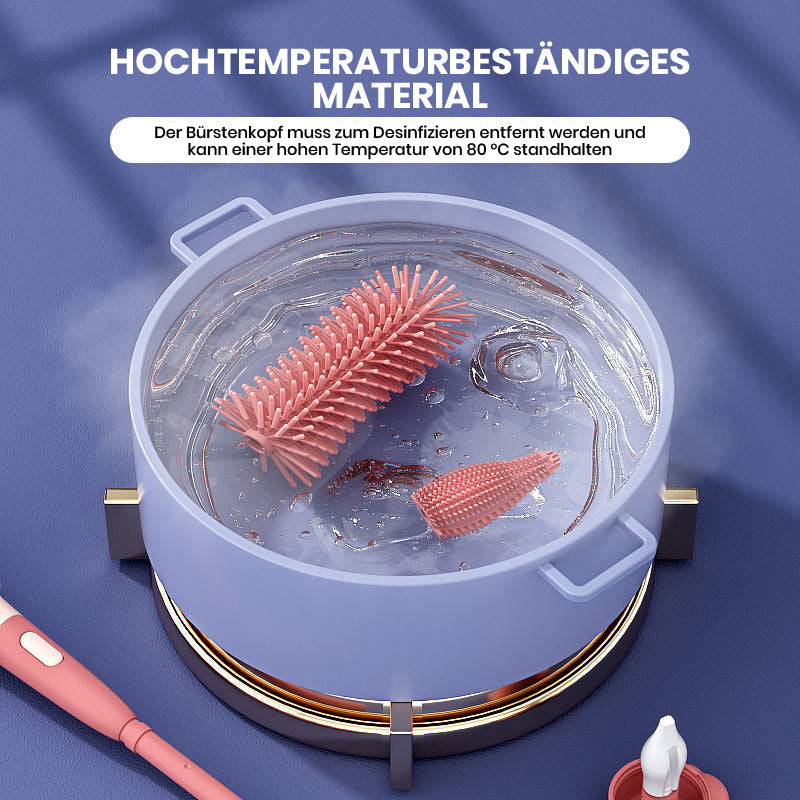 Rundum-Reinigung: Der Silikonbürstenkopf ist weich und flexibel und kann tief in den Flaschenboden eindringen und passt in jeden Winkel des Flaschenkörpers, um ohne Sackgassen zu reinigen.