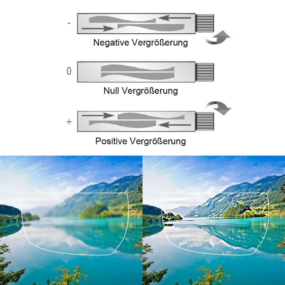 Einstellbare Vergrößerungslinien: Drehen Sie das Einstellrad, um Verschreibung und Vergrößerung genau an Ihre Anforderungen anzupassen. Mit einem praktischen Produkt deutlich sehen.
