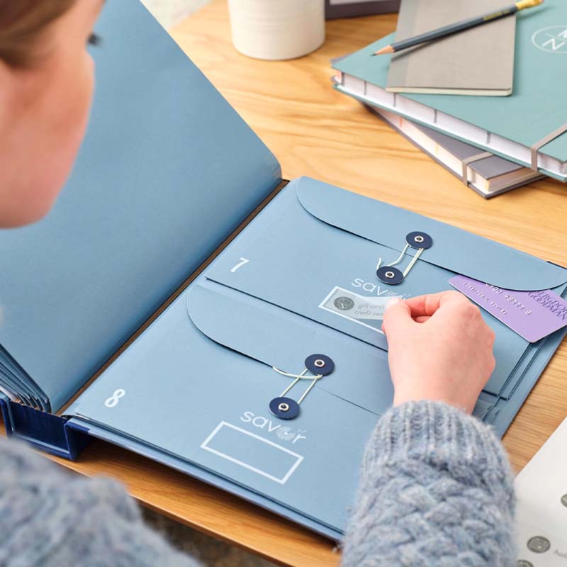ORGANISATOR FÜR ZUHAUSE UND SCHULE: 10 schwere, erweiterbare Umschläge in verschiedenen Größen (6 große, 4 halbe Größen) bieten Platz für 20 Blätter oder Fotos. Die Stoffbezugsmappe ist auch ein hübsches und modernes Schreibtischaccessoire. Sorgt für Ordnung und Ordnung auf dem Schreibtisch.