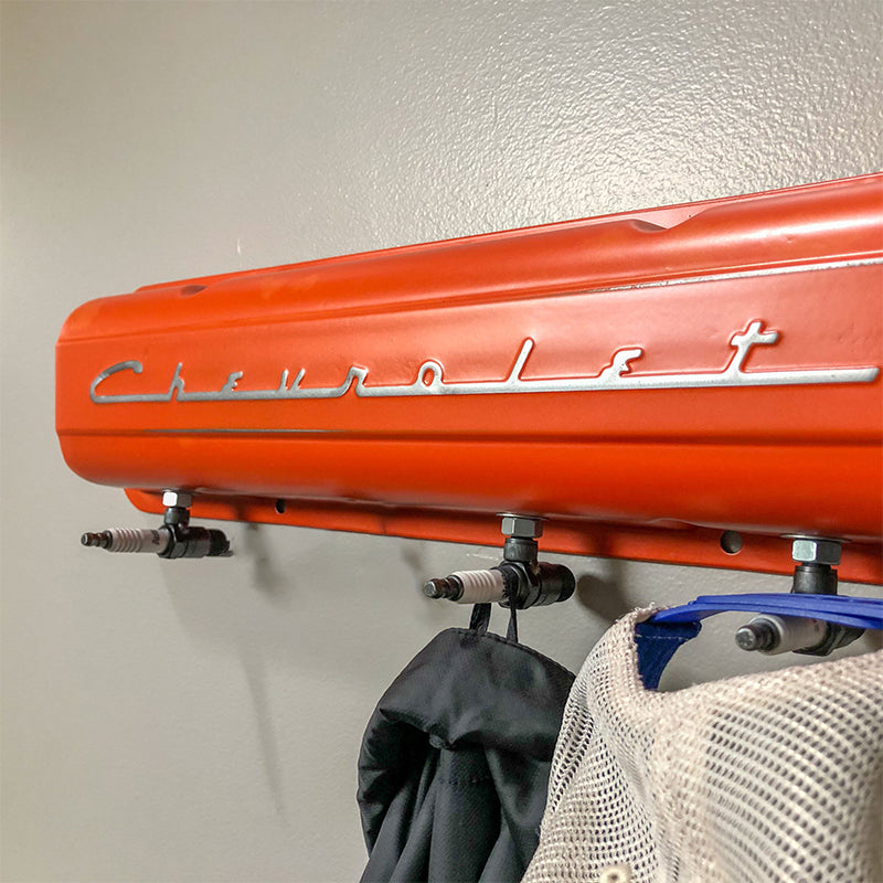 Nicht nur für Garagen! Unser aus Original-Autoteilen gefertigter Bonnet-Garderobenständer verfügt über vier stabile, fest verschweißte Haken, an denen Sie Ihren Lieblingsmantel, Hut oder Rucksack befestigen können!
