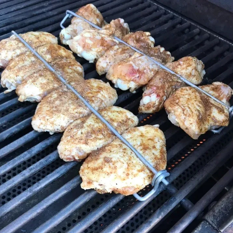 【Mehrere Hähnchenflügel gleichzeitig grillen】: Unsere Hähnchenflügel-Grillschienen verfügen über ein praktisches Design, mit dem Sie mehrere Hähnchenflügel gleichzeitig grillen können. Das bedeutet mehr leckeres Essen in kürzerer Zeit, perfekt für Picknicks im Freien, Campingausflüge und Grillabende.