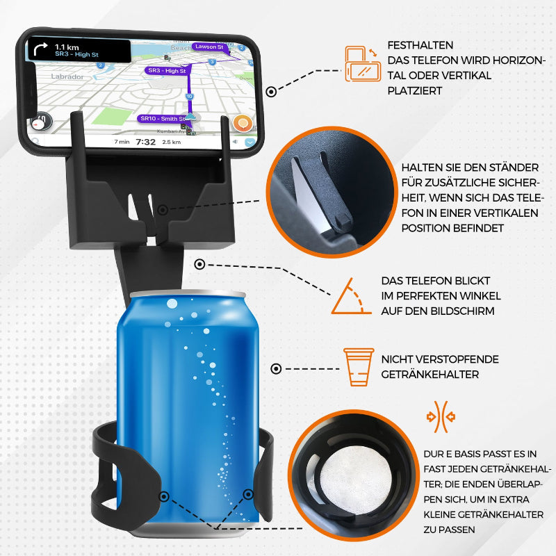 【Verbessertes 2-in-1-Design】 Es ist nicht nur ein Autotelefonhalter, sondern auch ein schöner Getränkehalter im Auto. Wir haben einen kleinen Becherhalter hinzugefügt, der nicht nur kleine Becher/Flaschen fester hält, sondern auch eine Flasche mehr als andere. Es ist weit verbreitet in jedem Raum Ihres Autos.