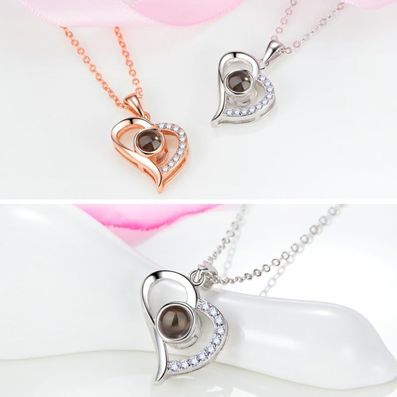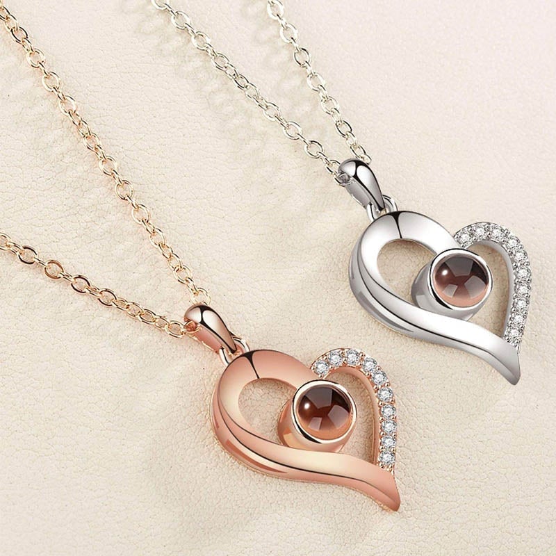 Mit einem wunderschönen Design und atemberaubenden, hochwertigen Metallen umschließt die herzförmige Projektionshalskette anmutig die Hälse der wichtigsten Frauen in Ihrem Leben.