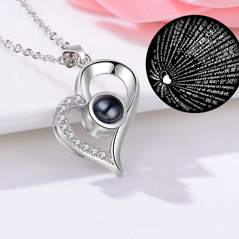 Das Zentrum der herzförmigen Projektionshalskette ist eigentlich eine Linse. Schauen Sie tief in die Linse und entdecken Sie ein erstaunliches Geheimnis: Worte und Sätze der Liebe aus 100 verschiedenen Sprachen sind in dieser magischen kleinen Welt geschrieben! Bereiten Sie sich auf die Ausgießung von Liebe und Küssen vor, wenn Sie Ihrem Liebsten dieses unglaubliche Geheimnis zeigen, das in seiner wunderschönen Halskette verborgen ist.
