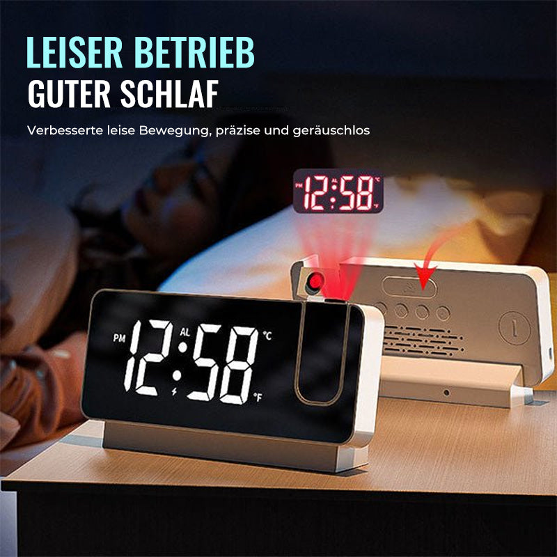 Dieser Projektionswecker projiziert die Uhrzeit an Ihre Wand oder Decke, um sie einfach und bequem anzuzeigen.