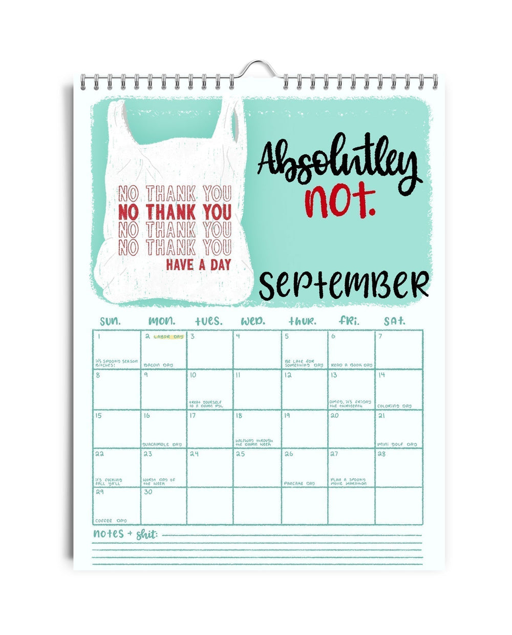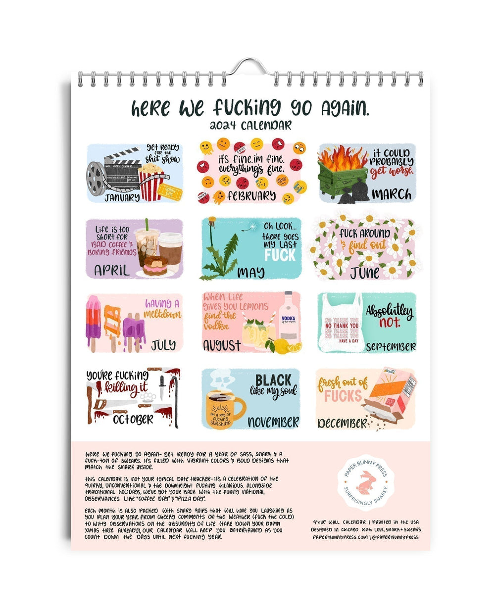 Jeder Monat ist außerdem vollgepackt mit bissigen Sprüchen, die Sie bei Ihrer Jahresplanung zum Lachen bringen werden. Von frechen Kommentaren zum Wetter (Scheiß auf die Kälte) bis hin zu witzigen Beobachtungen über die Absurdität des Lebens (bau endlich deinen verdammten Weihnachtsbaum ab) wird unser Kalender Sie unterhalten, während Sie die Tage bis zum nächsten verdammten Jahr herunterzählen.