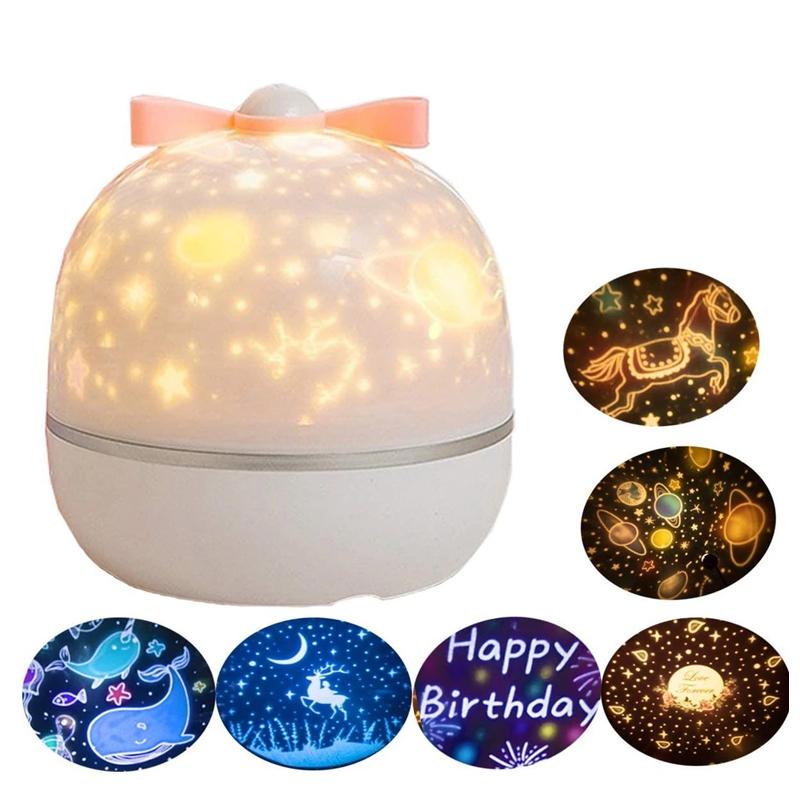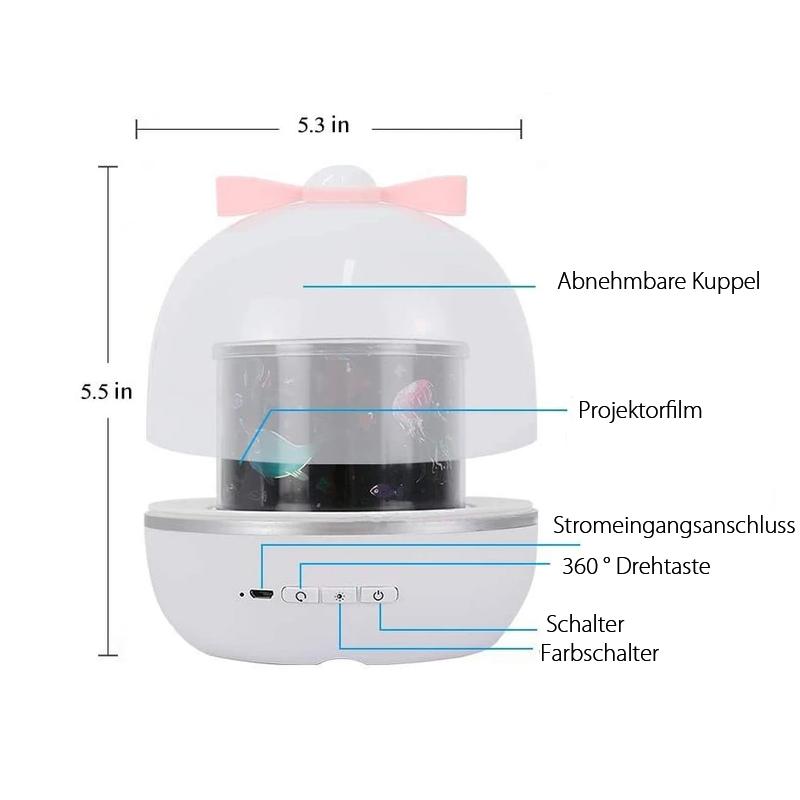 6 OPTIONALE FILME: Bitte öffnen Sie den Deckel oben, um die 6 verschiedenen Themen zu projizieren: Magisches Universum, Ozean-Unterwasser, rotierender Trojaner, Alles Gute zum Geburtstag, Rosengarten, Glücklicher Hirsch. Das schöne Licht wird an die Decke oder Wand projiziert, was eine entspannte Atmosphäre schafft und ein großartiges Nachtlicht für Kinder ist, die vor allem vor dem Schlafengehen Angst vor der Dunkelheit haben.