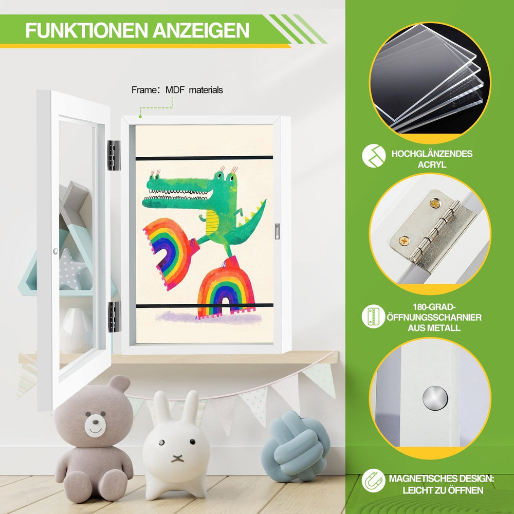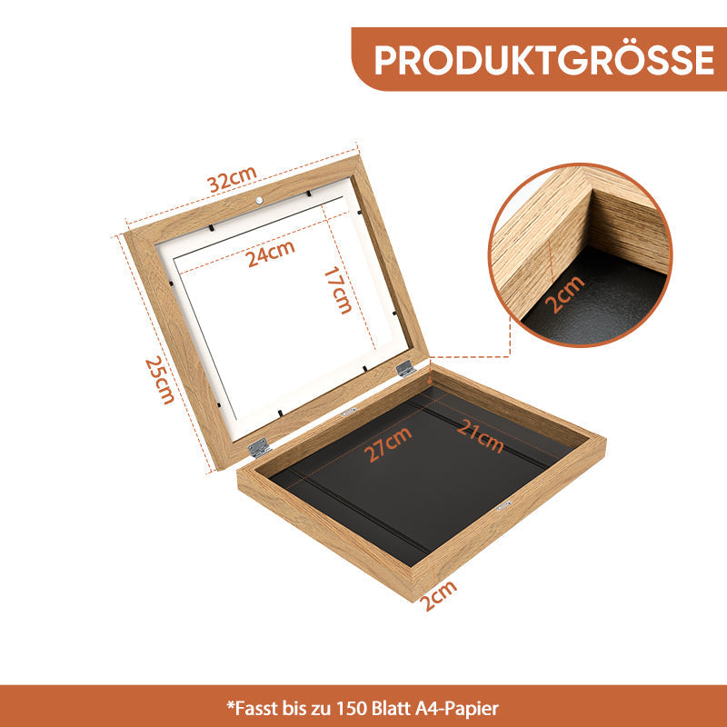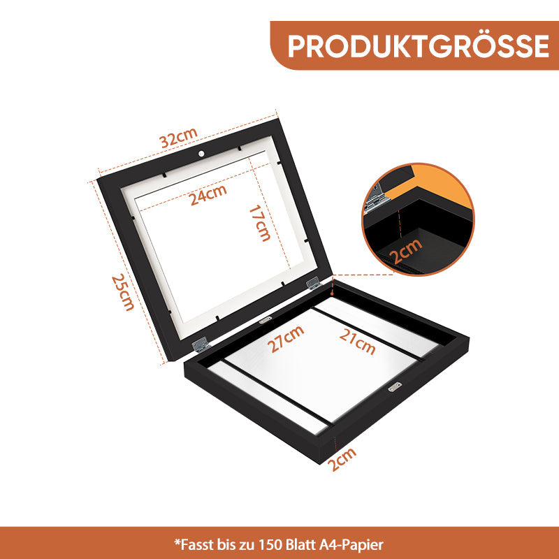 Design: 21 x 29,7 cm große Rahmen, perfekt für die geschätzten Kunstwerke Ihres Kindes. Die Rahmen lassen sich wie ein Buch auf- und zuklappen, ohne Matte und feste Nägel. Glatt und verletzt die Hand nicht.