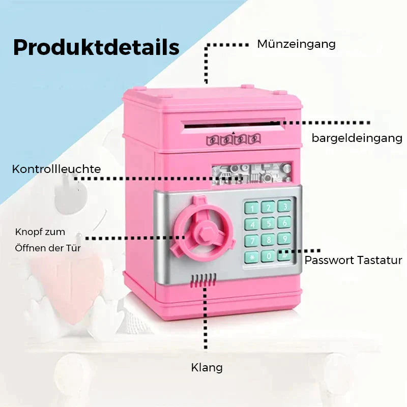 Es sieht aus wie ein Spielzeug; Es ist eine kleine Truhe für die Finanzverwaltung. Mit Ihrem eigenen Passwort und Ihrer Stimme können Sie Geld sparen, Sparziele festlegen und Finanzen planen.