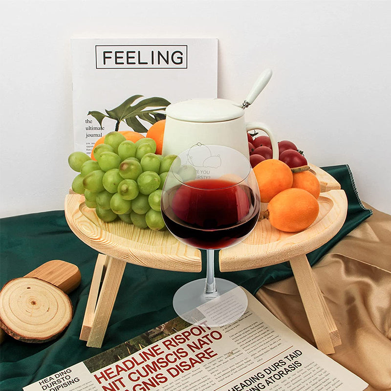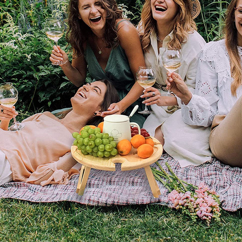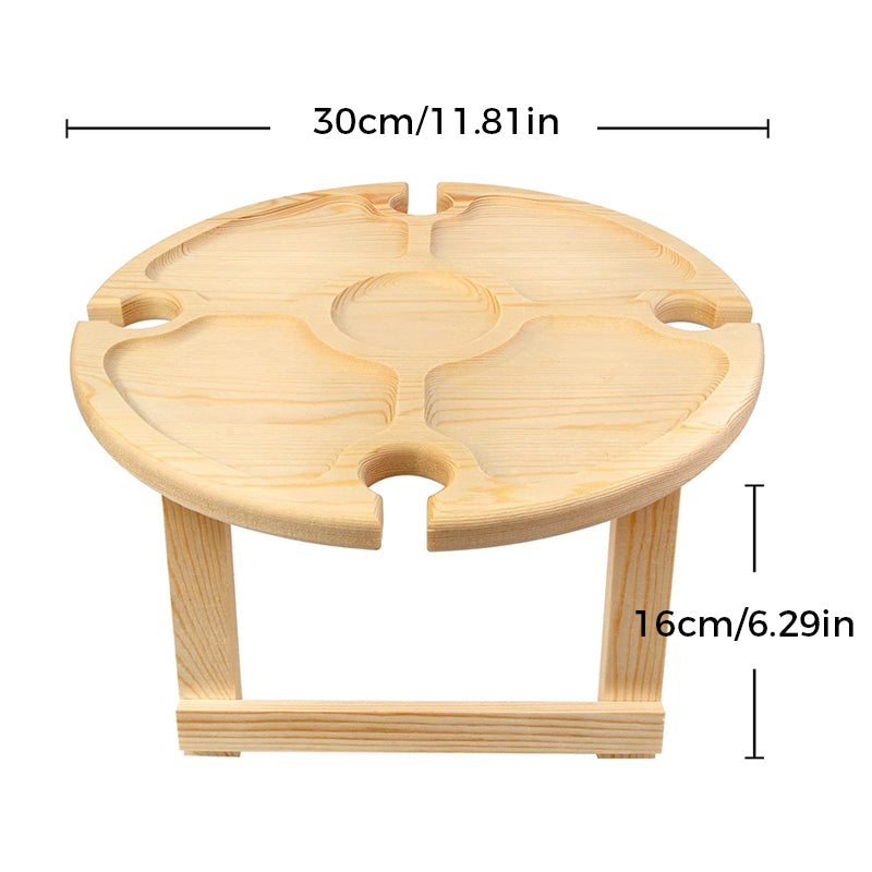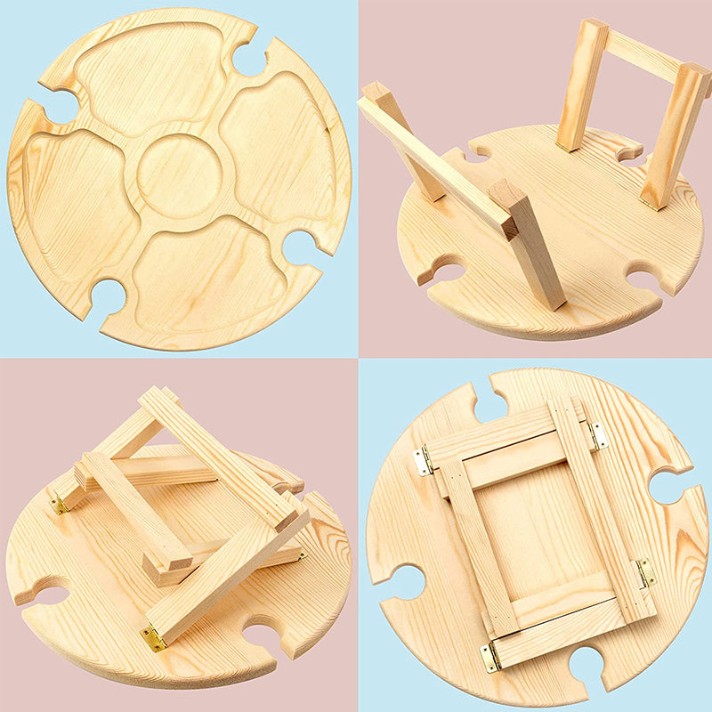 Leicht und Tragbar: Die Tischbeine sind klappbar. Das Weinbefestigungsloch kann als Griff zum einfachen Tragen verwendet werden.