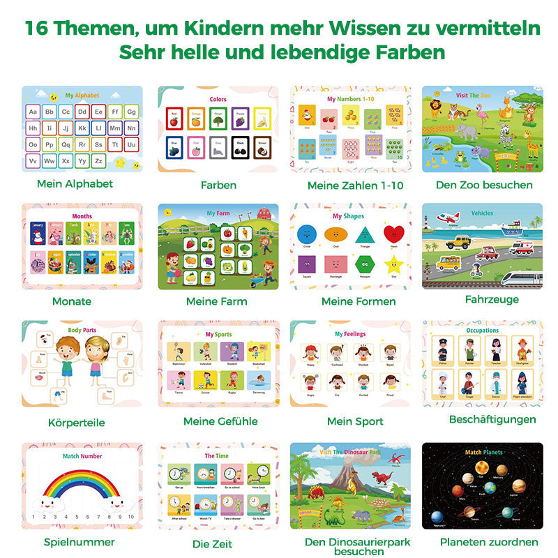 ⭐16 THEMENAKTIVITÄTEN⭐ Wir haben 16 Themen zum Lernen für Kinder entworfen, darunter Farben, Buchstaben, Zahlen, Formen, Größenunterschiede, Jahreszeiten, Wetter, Nutztiere, Planeten usw.