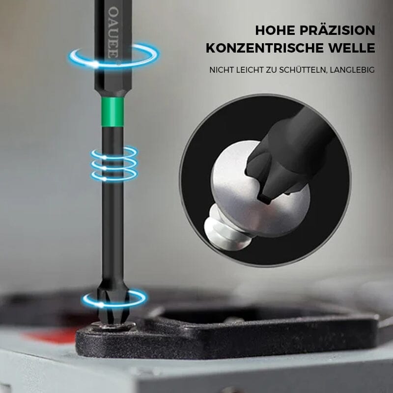 Magnetische Schraubendreherbits sind mit Zähnen ausgestattet, die ein Abrutschen verhindern. Sie können eine Bohrmaschine mit Dorn verwenden, um dieses Werkzeug anzutreiben.