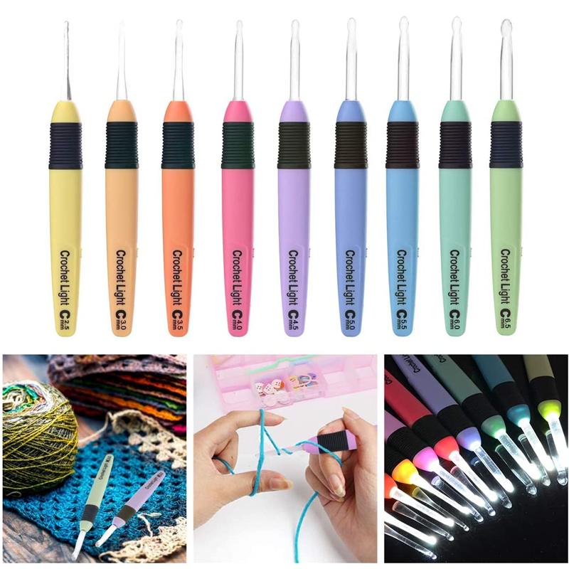 Eergonomische Häkelnadeln: Entwickelt mit äußerst bequemen Silikongriffen, die für lange Häkelsitzungen leicht zu handhaben sind und Ihnen eine präzise Kontrolle ermöglichen, mit der Sie äußerst detaillierte Designs erstellen können. Unser beleuchtetes Häkelnadelset ist perfekt für Menschen mit rheumatoider Arthritis oder Karpaltunnel.