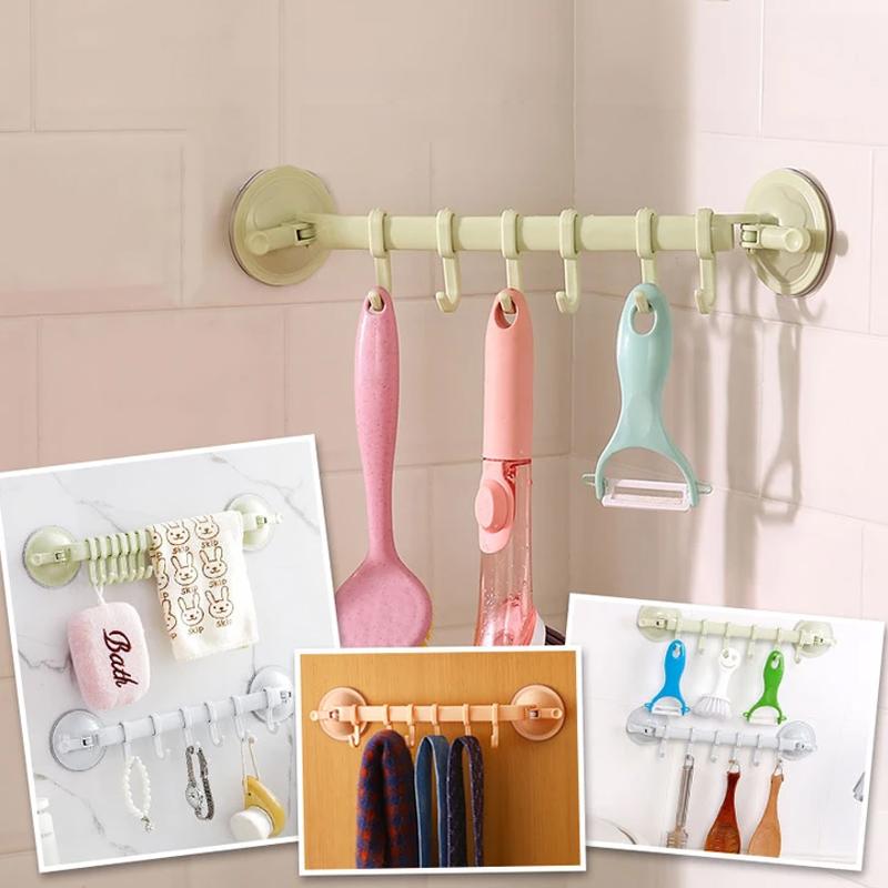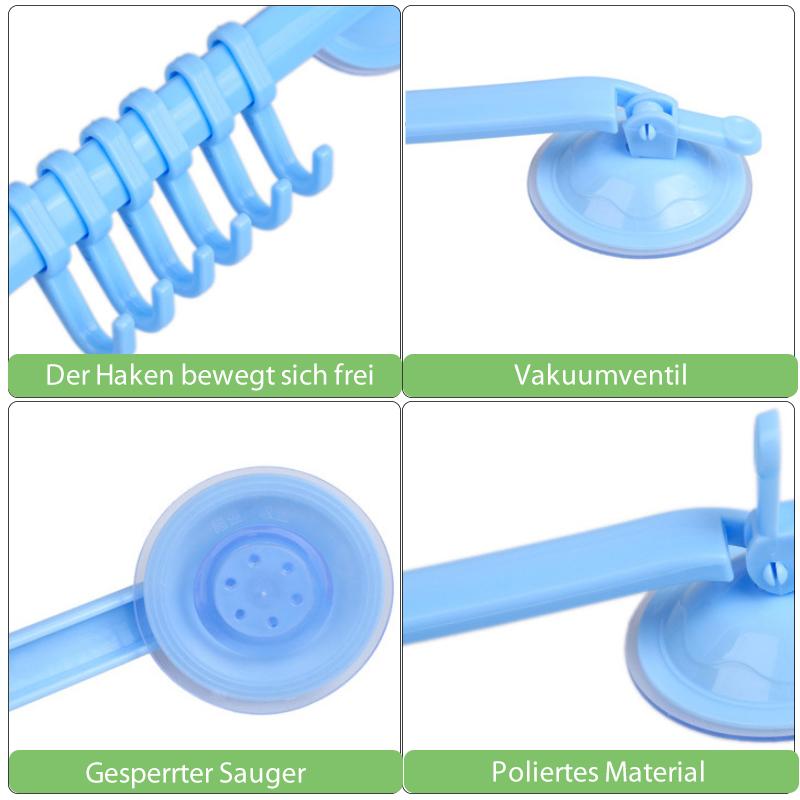 Saugnapf- und Lock-Design, starke Adsorptionskraft, gute Tragfähigkeit, 6 Haken können an der Wand montiert werden, können bewegt werden. Vakuum Doppel-Saugnapf, starke Saugkraft kann ca. 3-5 kg aushalten.
