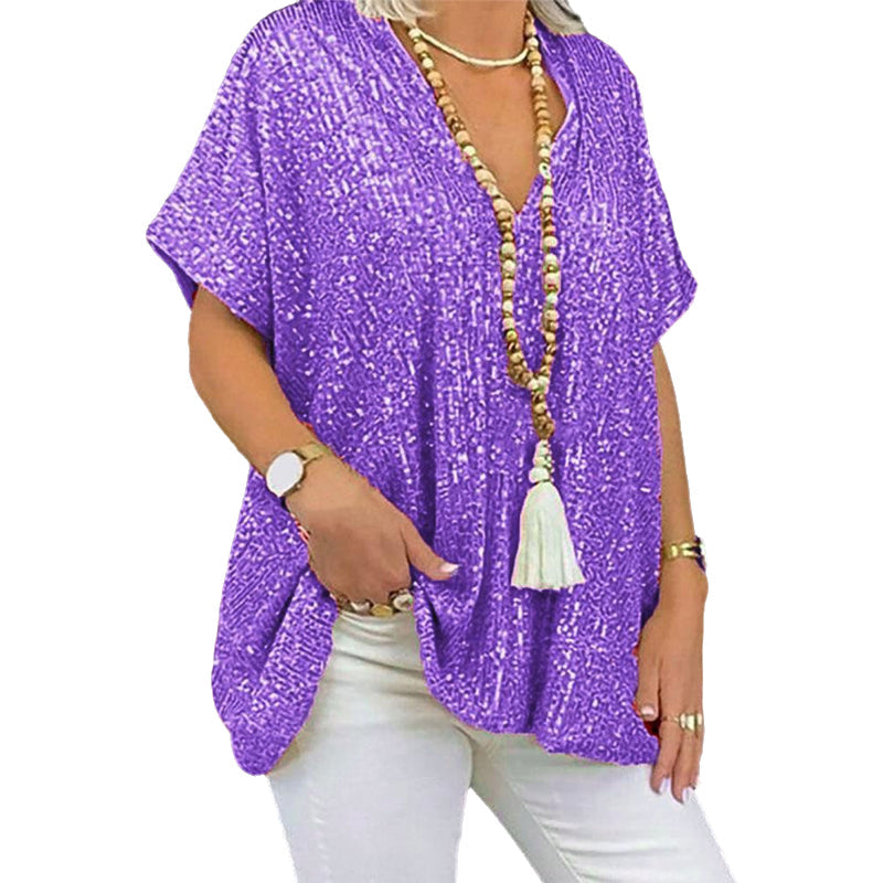 1 * Lockeres T-Shirt mit V-Ausschnitt und Pailletten