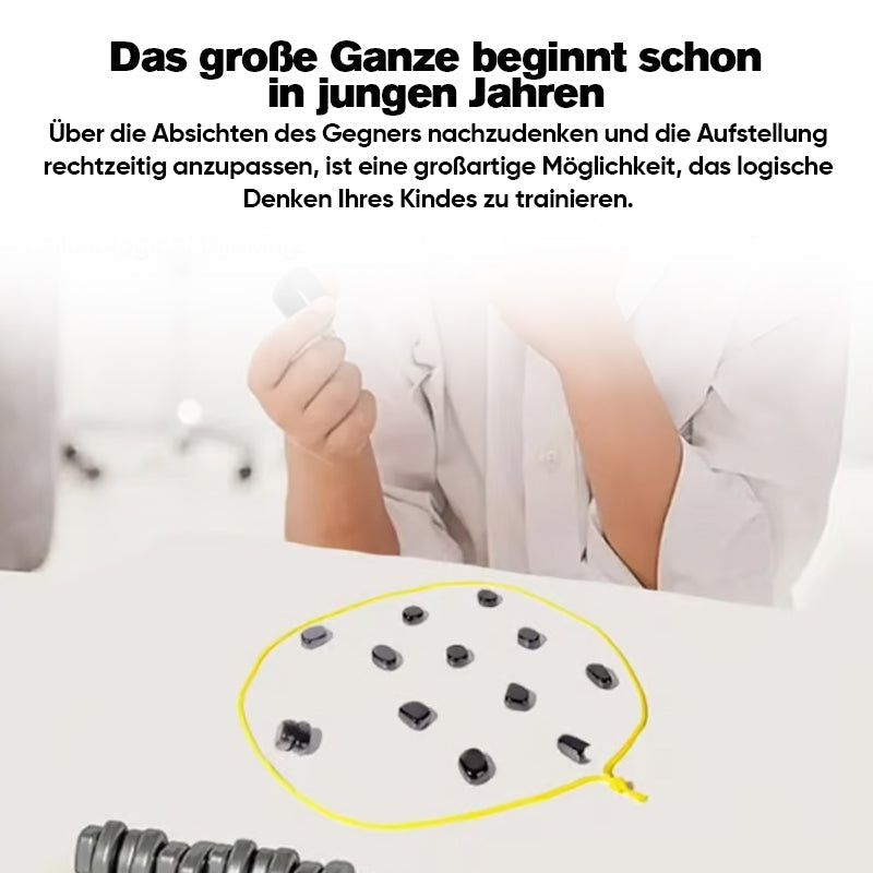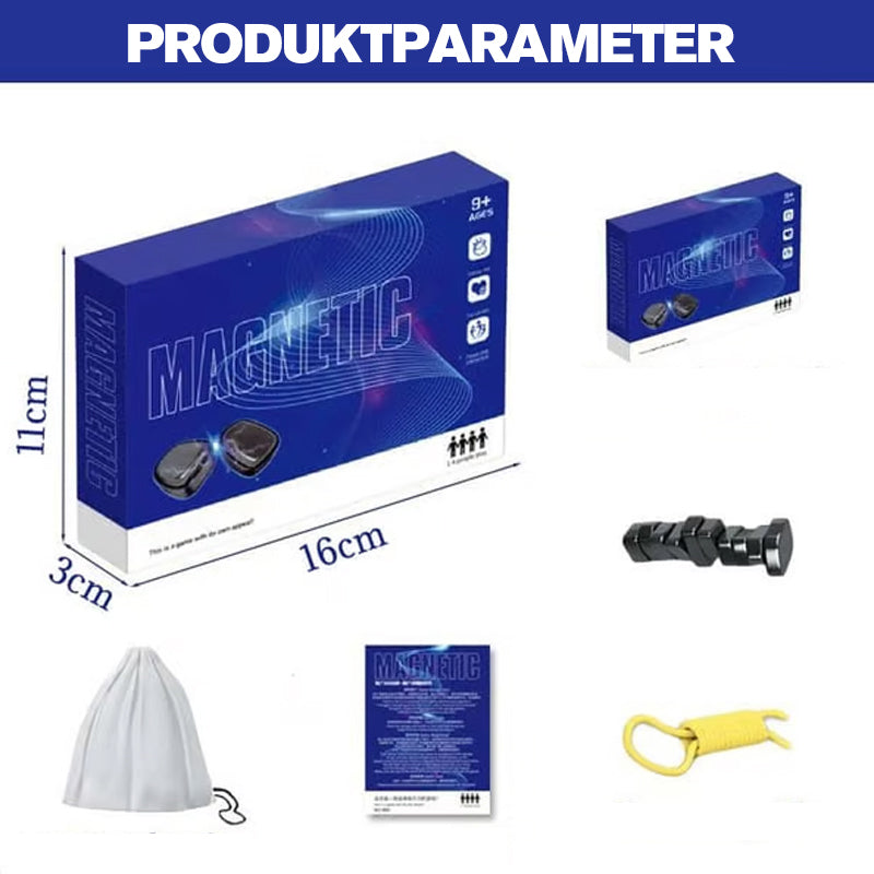 Dies ist ein strategisches Tischspiel, das 20 Magnete und ein Band enthält, das einen dynamischen Spielraum schafft.