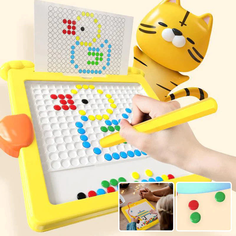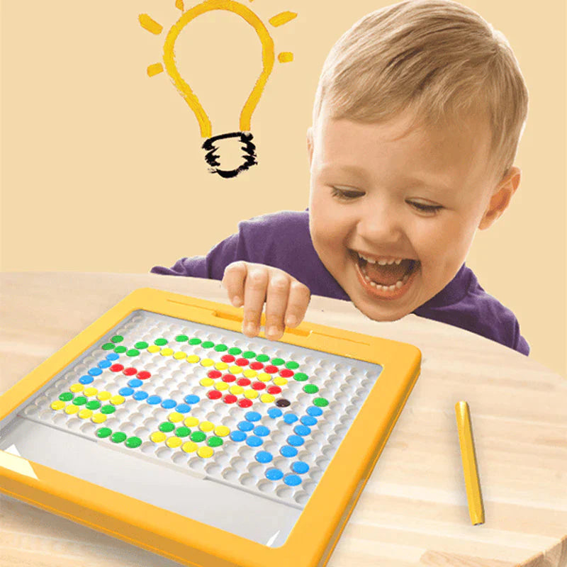 ENTWICKLUNGSFÄHIGKEITEN STÄRKEN: Die Magnettafel kann immer wieder verwendet werden, Kinder können die Grob- und Feinmotorik verbessern, indem sie mit dem Magnetstift die runden bunten Bohnen aufziehen, schieben und fallen lassen. Das Board kann leicht gelöscht werden, indem es aufrecht gestellt wird.