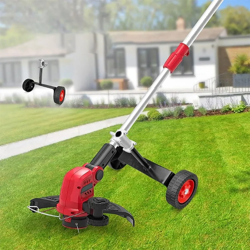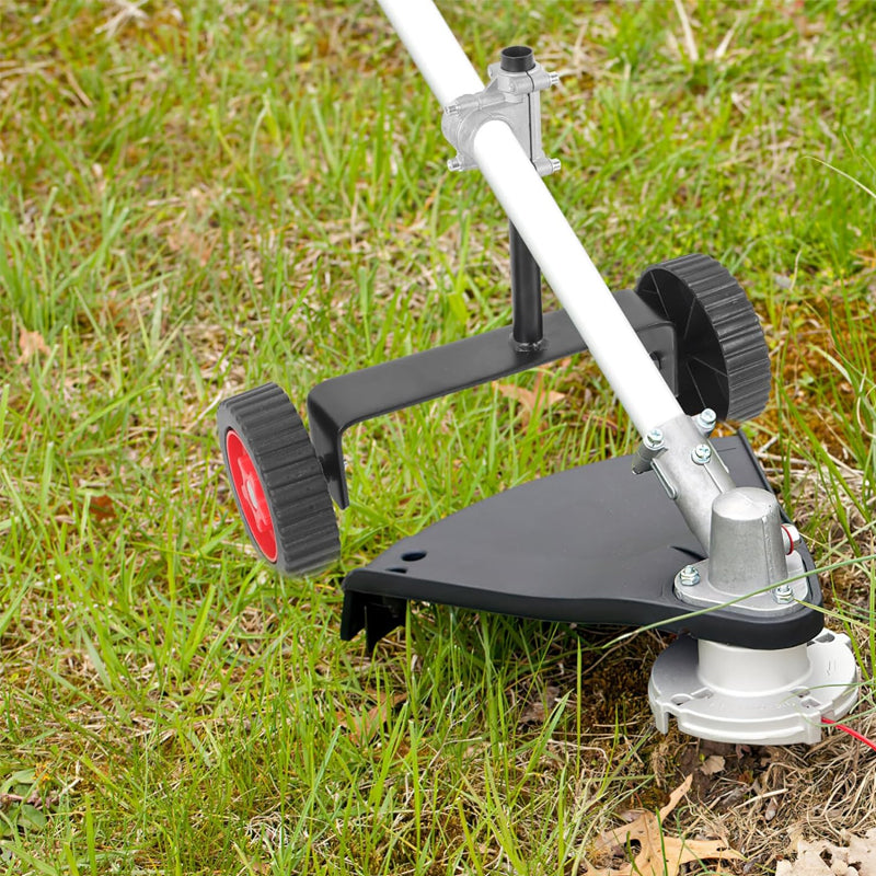Erhöhte Stabilität: Das Stützrad des Rasenmähers sorgt für zusätzliche Stabilität und Gleichgewicht Ihres Rasenmähers und verringert die Belastung Ihrer Arme und Schultern beim Schneiden von Gras. Es verhindert, dass sich der Trimmer zu tief in den Boden eingräbt oder das Gras skalpiert, was zu einem sauberen und professionell aussehenden Rasen führt.