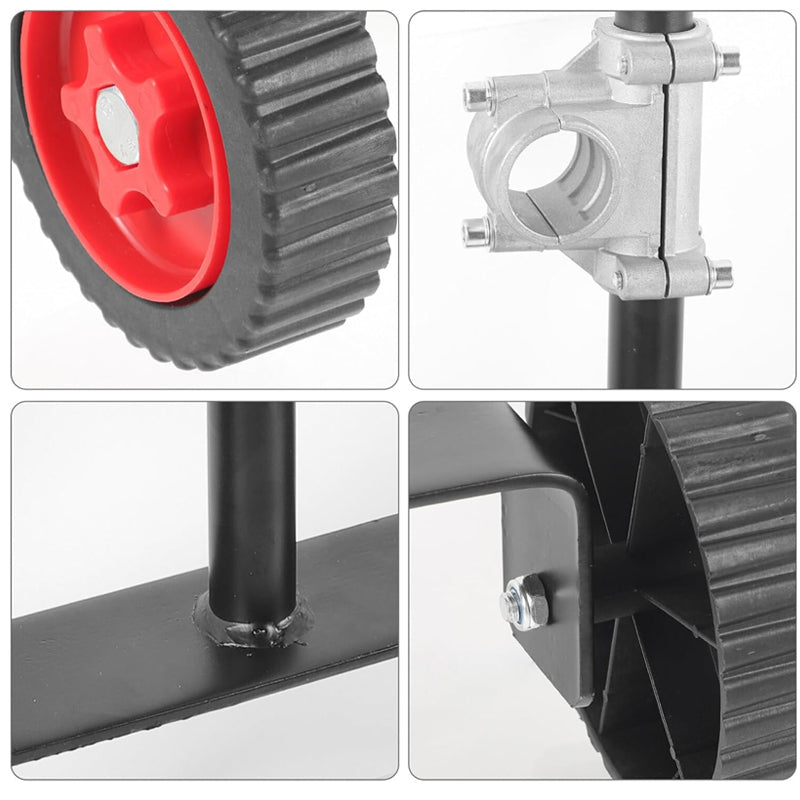 Tragbar und einfach zu installieren: Das leichte und kompakte Design dieses Rasenmäher-Stützrads macht es sehr tragbar und bequem zu verwenden. Es kann ohne kompliziertes Werkzeug oder Hardware einfach an Ihrem Trimmer angebracht werden, was eine schnelle und problemlose Installation ermöglicht.