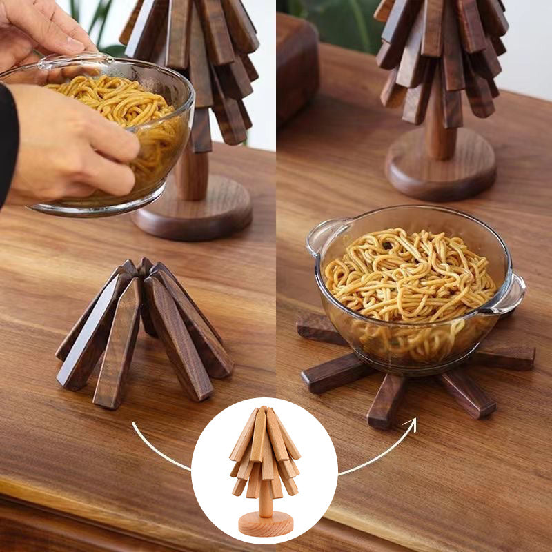 ✅【Schwarze Walnussholz Tischmatte】Baumform faltbare hitzebeständige Pads aus reinem natürlichem schwarzen Walnussholz. Gute Wärmedämmwirkung und sorgt dafür, dass die Tischplatte nicht beschädigt wird. lange Lebensdauer. Wenn es nicht in Gebrauch ist, kann es zusammengefaltet werden und als Tischdekoration verwendet werden, schön und praktisch.