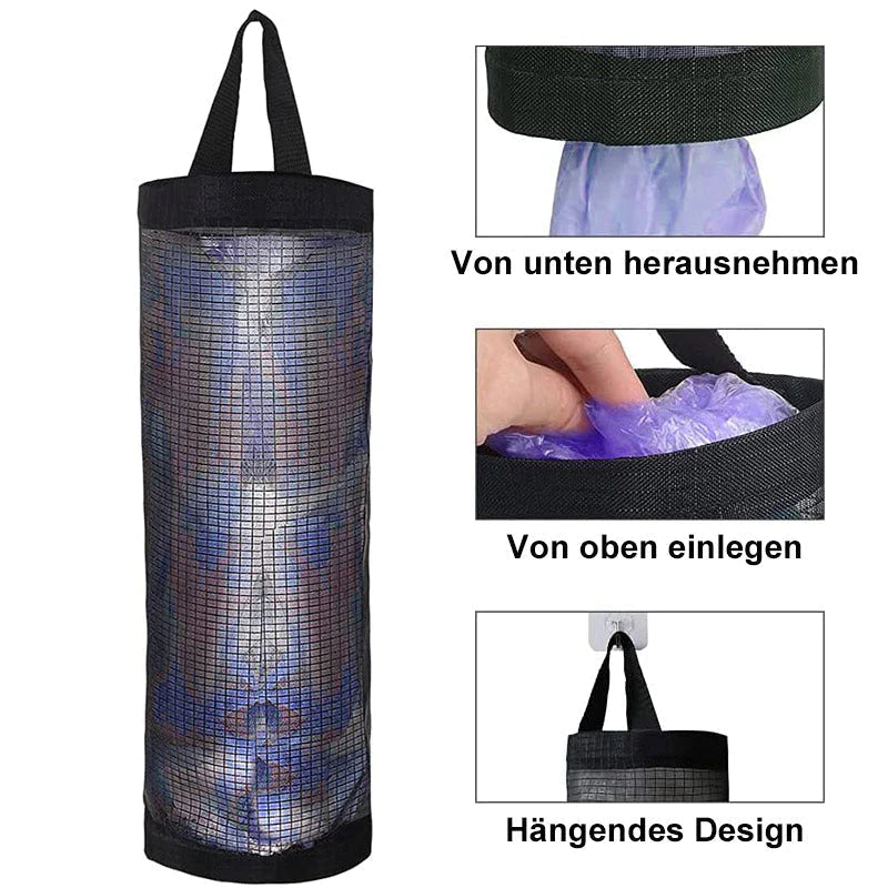 HÄNGENDES DESIGN. Sie können es überall aufhängen, wo Sie möchten. Mit elastischem Öffnungsdesign kann die Plastiktüte leicht von unten entnommen werden.
