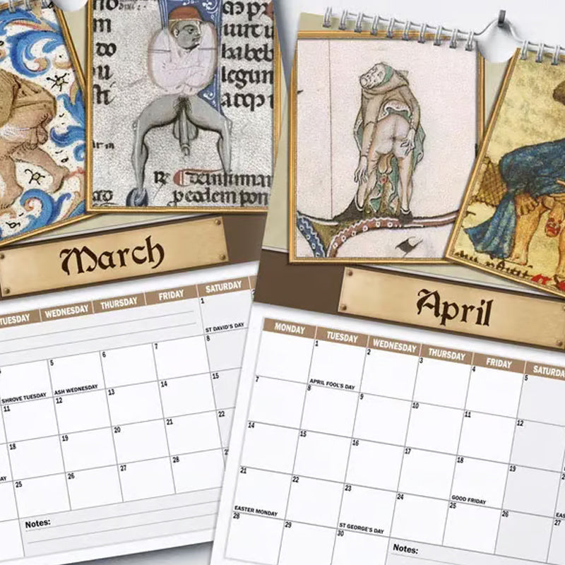 Funktionales Design: Neben seinem künstlerischen Reiz bietet der Kalender „Medieval Dick Pics 2025“ reichlich Platz für Notizen, Termine und Erinnerungen und verbindet Spaß mit Funktionalität.