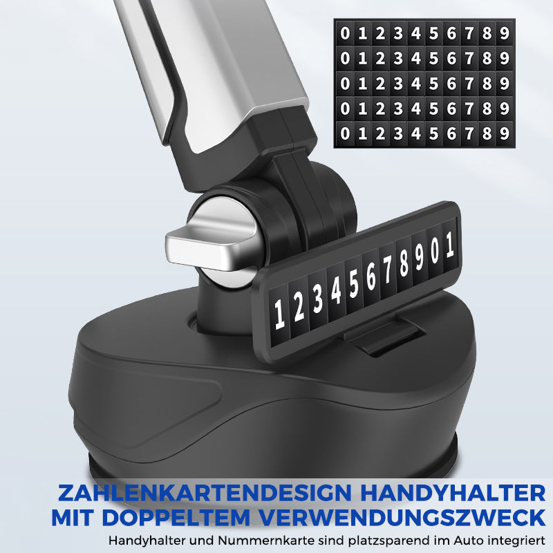Autotelefonhalter, 360-Grad-Drehung, langer Arm, Windschutzscheiben-Handyständer, einziehbares Mumber-Platten-Design, Innenzubehör